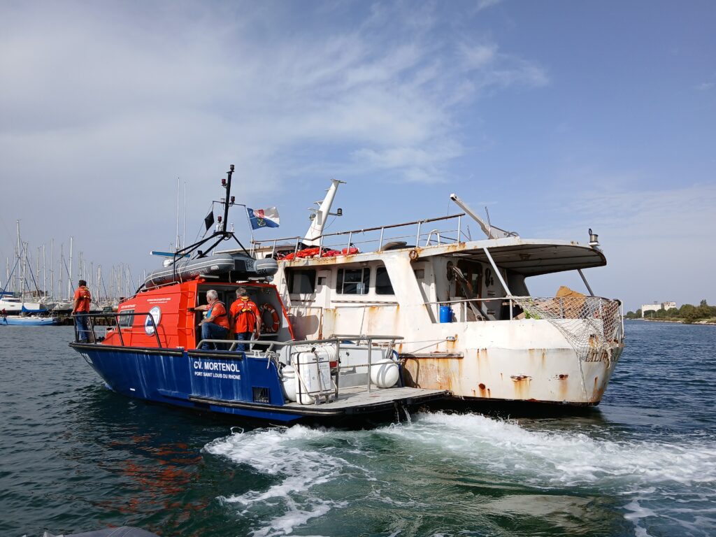 Le travail est ardu car la plupart des épaves sont coulées ou les bateaux abandonnés d’une grande dimension mais, grâce au soutien financier du Fonds d’intervention maritime (FIM), piloté par le Secrétariat d’Etat chargé de la Mer et de la Biodiversité, les équipes du Pôle Nautisme Mer ont pu procéder à la phase 2 de l’évacuation, de la dépollution et de la destruction d’épaves de bateaux de plaisance à Port-Saint-Louis-du-Rhône au lieu-dit Quai Ferrigno, sur la Presqu’île du Mazet.