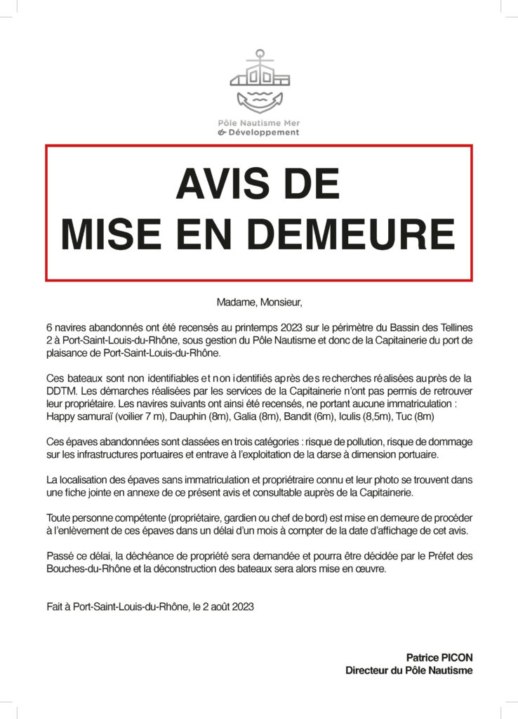 BASSIN DES TELLINES – MISE EN DEMEURE 2 - Pôle Nautisme