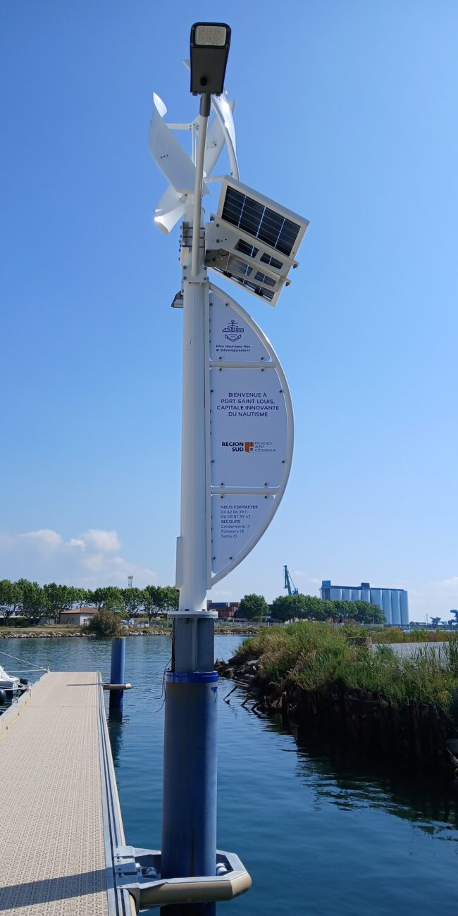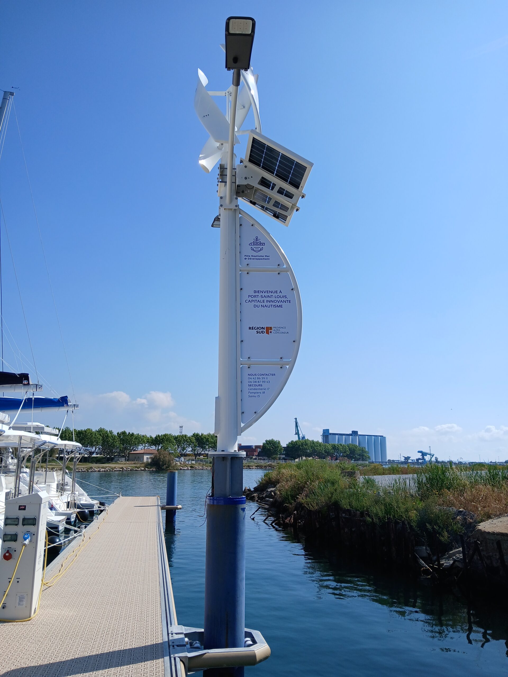 Le port de plaisance Port-Saint-Louis-du-Rhône fait souffler un vent nouveau sur l’innovation environnementale maritime. Sous l’impulsion de la SPL Pôle Nautisme Mer Port-Saint-Louis Provence, un projet pionnier au niveau mondial vient d’être installé : des mâts d’éclairage autonomes équipés d’éoliennes hélicoïdales et de panneaux solaires. Fixés sur les pieux des pontons, ces mâts innovants permettront d’éclairer les pannes du port sans recours au réseau électrique grâce aux ressources inépuisables que sont le soleil et le vent, des denrées communes à tous les ports.