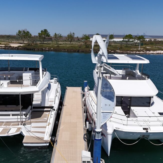 Ce projet breveté par le Pôle Nautisme Mer, conçu et intégré par les entreprises spécialisées Enerlice et SamEner, a reçu le soutien du Cerema (Climat et Territoires de demain) et de la Région Sud Provence-Alpes-Côte d’Azur ainsi que du Crédit Maritime.