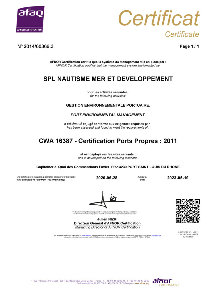 Le port de plaisance de Port-Saint-Louis-du-Rhône est engagée dans cette démarche active, avec des engagements concrets pour lutter en faveur de la préservation des milieux aquatiques et du développement durable des activités littorales et marines.